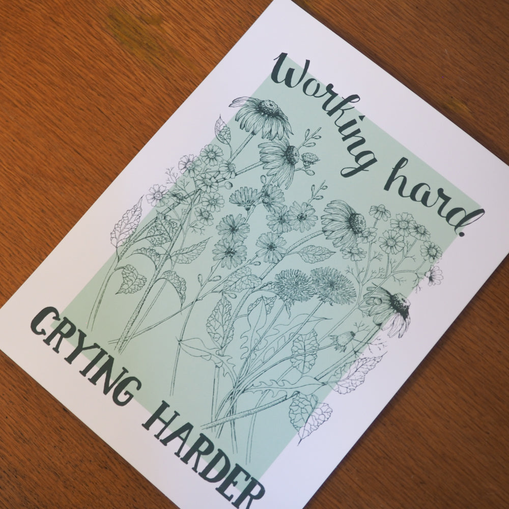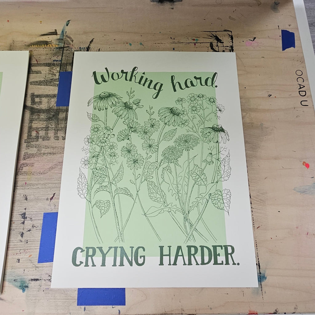 Working Hard. Crying Harder. Screen Printed Wall Art